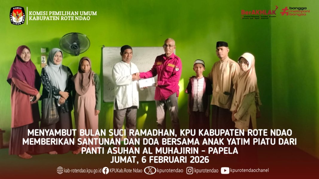 #temanpemilih ,KPU Kabupaten Rote Ndao gelar Safari Demokrasi Partisipatif Ramadhan 1447 Hijriah, Kamis (5/3/2026) di Masjid Ar- Rahman Oenggae, Kecamatan Pantai baru- Rote Ndao. Kegiatan Safari Demokrasi Ramadhan Adalah program Pendidikan pemilih berkelanjutan yang diinisiasi oleh KPU Provinsi NTT yang bertujuan untuk meningkatkan pemahaman dan partisipasi masyarakat dalam kehidupan demokrasi melalui pendekatan edukatif dan religius, sehingga nilai-nilai demokrasi dapat tumbuh seiring dengan penguatan nilai keagamaan di tengah masyarakat. Hadir sebagai penceramah, Anggota KPU Kabupaten Rote Ndao Amril Abdurachman dengan tema Ramadhan dan Demokrasi. Dalam ceramahnya Amril menjelaskan bahwa puasa dan demokrasi adalah sama-sama mengajarkan nilai pengendalian diri, kejujuran dan persamaan derajat. Puasa melatih menahan amarah dan nafsu, sementara demokrasi menuntut kedewasaan bersikap. Keduanya menekankan keadailan sosial, kejujuran (anti politik uang) serta tanggung jawab bersama untuk kebaikan publik. Kegiatan diikuti oleh Ketua dan Anggota KPU Kabupaten Rote Ndao Agabus Lau, Zifyohn Sanu, Muhaimin Bere dan staf SDM Parmas.