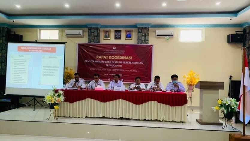 KPU Kabupaten Rote Ndao menyelenggarakan Rapat Koordinasi dan Rekapitulasi Daftar Pemilih Berkelanjutan Tahun 2022 periode Triwulan III(juli- september ) tingkat Kabupaten Rote Ndao yang berlangsung di Aula Hotel Ricky Baa-Rote Senin (3/10/2022) pada pukul 10:00 wita.