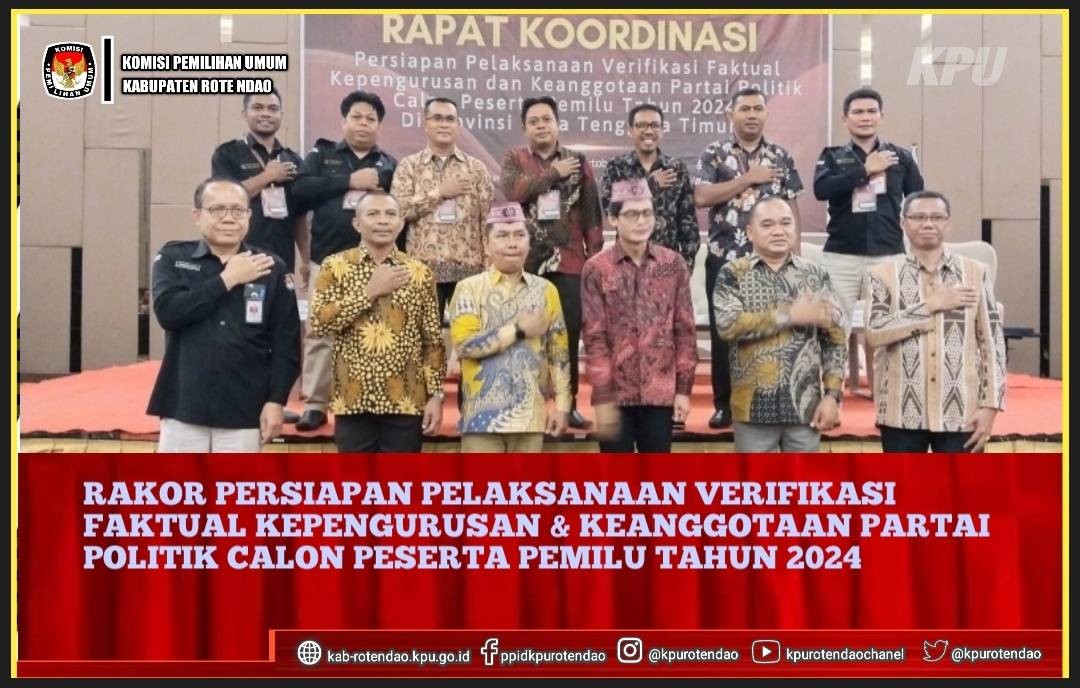 Hadir dalam Rakor Ketua KPU Kabupaten Rote Ndao Christian Dae Panie, Anggota : Meysias F.P. Dama, Hofra A. Anakay, Jorhans H. Maak, Agabus Lau serta Sekretaris KPU Kabupaten Rote Ndao Nem D.J. Pah. Kemudian dari Bawaslu Kabupaten Rote Ndao Demsi Toulasik, Perwakilan dari Dinas Dukcapil Daniel Tungga, Perwakilan dari Polres, Dandim 1627/RN, Dinas PMD, BIN Rote Ndao, Badan Kesbangpol Kab. Rote Ndao. Sementara dari Partai Politik diantaranya: Partai Perindo, PSI, PAN, PKS, Gerindra, PKN, Buruh, Garuda, Gelora dan PBB.