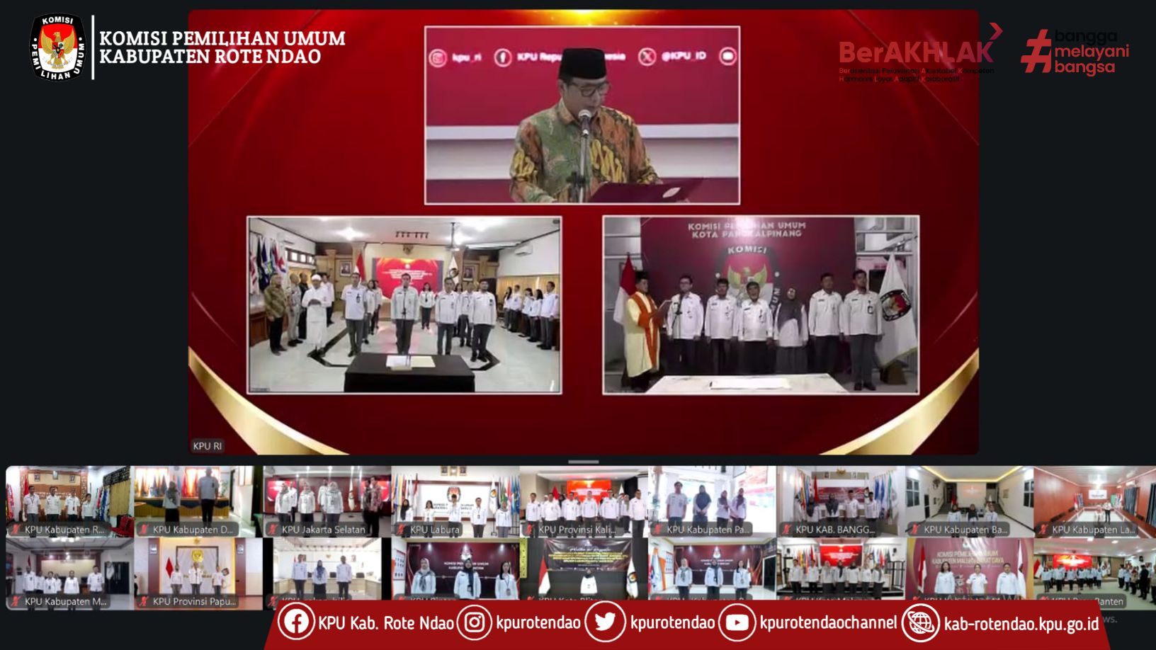 #TemanPemilih, KPU Kabupaten Rote Ndao mengikuti Pelantikan dan Pengambilan Sumpah/Janji Pejabat Fungsional Penata Kelola Pemilihan Umum di Lingkungan Sekretariat Jendral KPU, Sekretariat KPU Provinsi/ KIP Aceh dan Sekretariat KPU/KIP Kabupaten/Kota Tahun 2026 secara daring di Aula Kantor KPU Kabupaten Rote Ndao, Kamis(22/1/26).