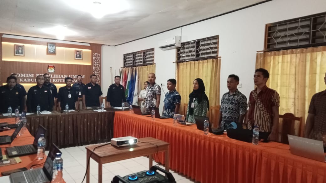 KPU Kabupaten Rote Ndao melaksanakan Bimbingan Teknis Penyusunan Daftar Pemilih Hasil Pemuktahiran Pemilihan Umum Tahun 2024 bersama Panitia Pemilihan Kecamatan (PPK) se-Kabupaten Rote Ndao pada Selasa (21/3/23).