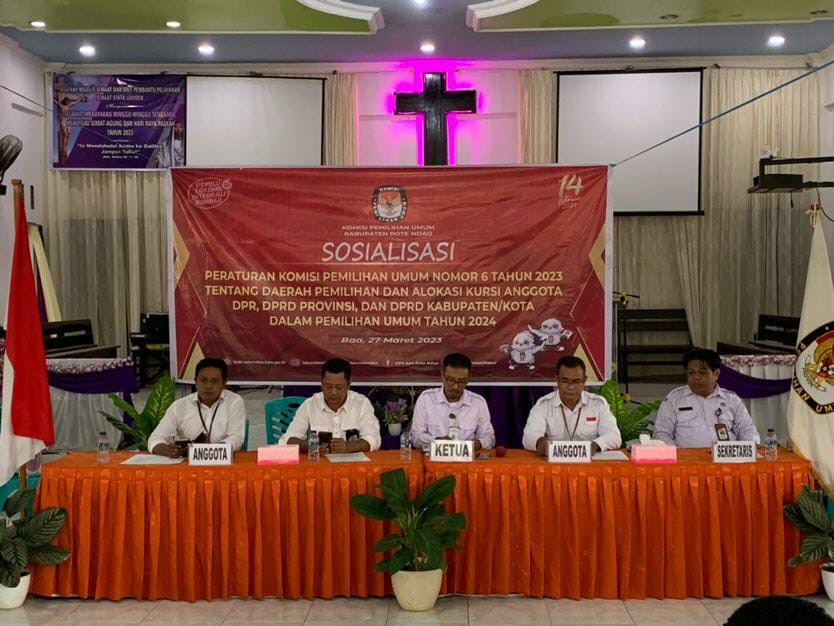 #Temanpemilih KPU Kabupaten Rote Ndao sosialisasikan Peraturan KPU Nomor 6 Tahun 2023 tentang Daerah Pemilihan dan Alokasi Kursi Anggota DPR, DPRD Provinsi, dan DPRD Kabupaten/Kota dalam Pemilihan Umum Tahun 2024 di Gedung Gereja Efata Lekioen, Kelurahan Mokdale, Kecamatan Lobalain, Pukul 09.00 WITA sampai selesai pada Senin(27/03/23)