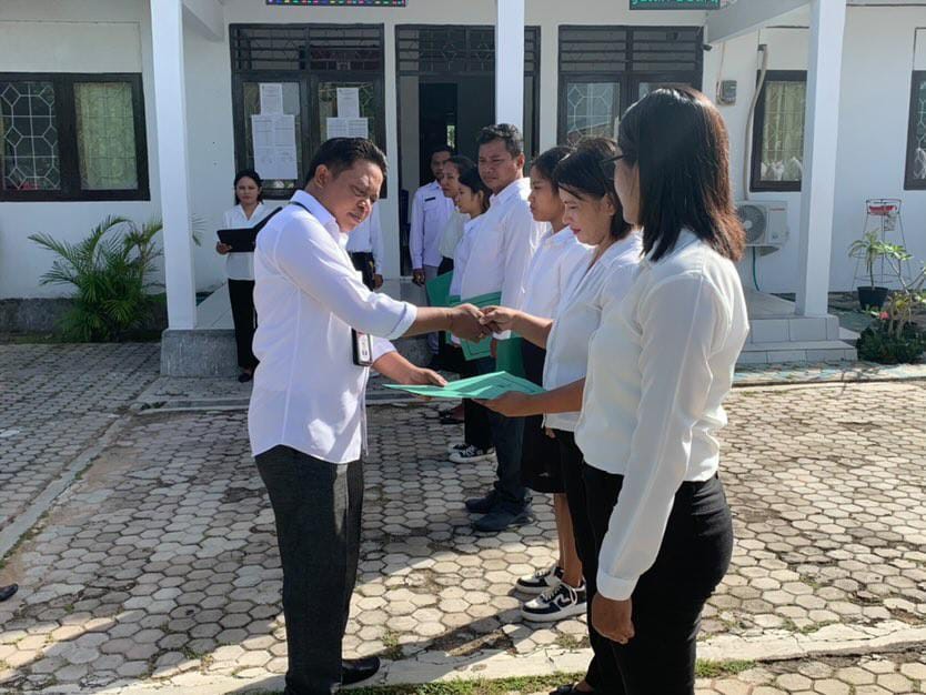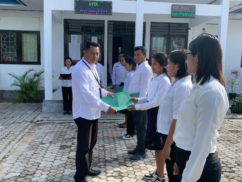 Penyerahan Keputusan Sekretaris KPU Kabupaten Rote Ndao dilaksanakan pada Senin (6/3/2023) oleh Ketua KPU Kabupaten Rote Ndao Christian Dae Panie, Anggota KPU Divisi Hukum dan Pengawasan Meysias F. P. Dama, Anggota KPU Divisi SDM dan Parmas Agabus Lau, Anggota KPU Divisi Program dan Data Hofra A. Anakay, Anggota KPU Divisi Teknis Jorhans H. Maak dan Sekretaris KPU Kabupaten Rote Ndao Nem D. J. Pah, saat apel pagi di halaman kantor KPU Kabupaten Rote Ndao.