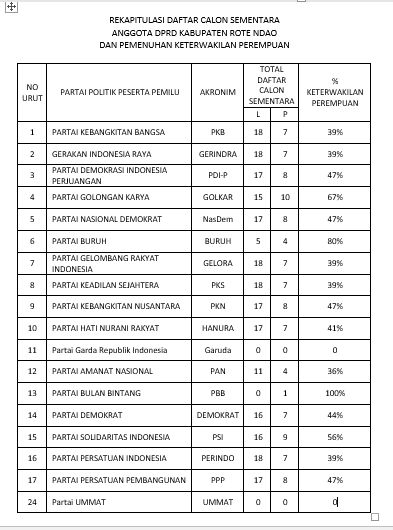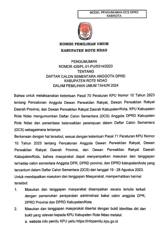 Pengumuman DCS (Daftar Calon Sementara) Anggota DPRD Kabupaten Rote Ndao Pemilu 2024