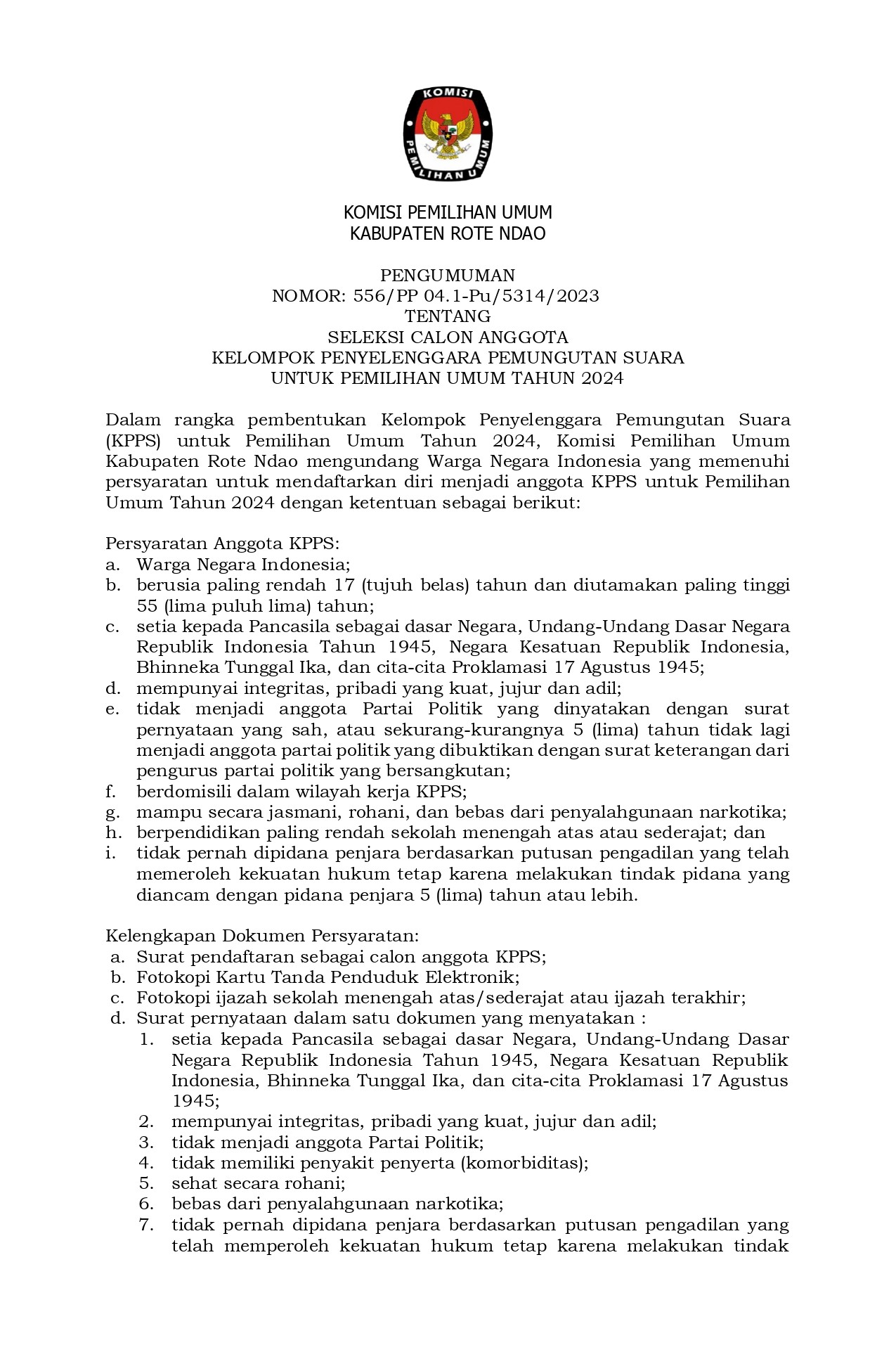 SELEKSI CALON ANGGOTA KELOMPOK PENYELENGGARA PEMUNGUTAN SUARA UNTUK PEMILIHAN UMUM TAHUN 2024