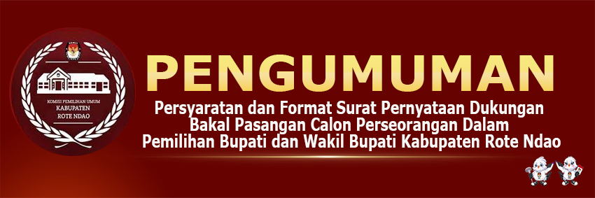 Persyaratan dan Format Surat Pernyataan Dukungan Bakal Pasangan Calon Perseorangan Dalam Pemilihan Bupati dan Wakil Bupati Rote Ndao Kamis, 28 Maret 2024 00:00 394 Persyaratan dan Format Surat Pernyataan Dukungan Bakal Pasangan Calon Perseorangan Dalam Pemilihan Bupati dan Wakil Bupati Rote Ndao [KLIK DISINI] Baca Selengkapnya