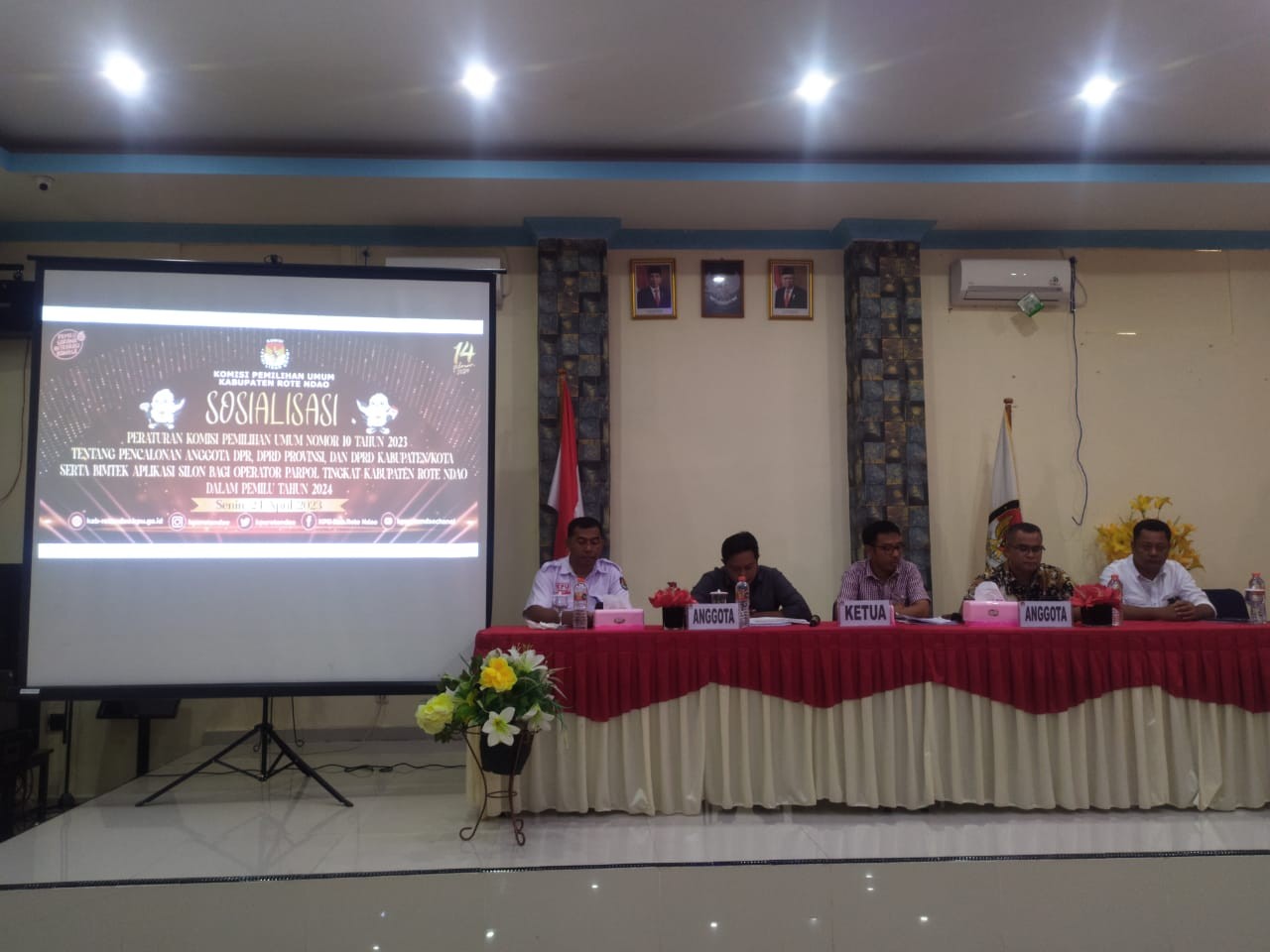 #temanpemilih Disela-sela tahapan pengajuan pendaftaran bakal calon Anggota DPRD Kabupaten, KPU Kabupaten Rote Ndao selenggarakan bimtek lanjutan bagi admin SILON partai politik di Aula KPU Kabupaten Rote Ndao, Senin(08/05/2023). Kegiatan dilaksanakan untuk menginventarisir permasalahan yang dihadapi oleh admin SILON partai politik dalam pengimputan data, juga untuk memperoleh data rencana partai politik yang sudah siap mengajukan pendaftaran bakal calon guna pembuatan jadwal pendaftaran sehingga KPU Kabupaten Rote Ndao dapat mempersiapkan segala sesuatu saat pelaksanaan proses penerimaan, serta mengetahui lebih dini apabila ada penumpukan partai politik pada saat pengajuan pendaftaran di hari terakhir. Kasubag Teknis Penyelenggaraan Pemilu, Partisipasi dan Hubungan Masyarakat Ardiansyah F. B. Lola memberikan materi tentang Alur Persetujuan Pengajuan Bakal Calon oleh DPP Parpol, serta mekanisme penginputan data administrasi bakal calon melalui aplikasi SILON, dan dilanjutkan dengan penjelasan singkat terkait teknis Generate Formulir pencalonan serta spesifikasi dokumen yang diunggah ke SILON sesuai PKPU 10 Tahun 2023 oleh Admin SILON KPU Kabupaten Rote Ndao Petrus Paulus Leo. Pada kesempatan yang sama, Anggota KPU Kabupaten Rote Ndao Divisi Teknis Penyelenggaraan Pemilu Jorhans H. Maak memandu diskusi terkait kendala yang dihadapai dalam proses pendaftaran bakal calon serta kesalahan penginputan data maupun unggah dokumen administrasi bakal calon oleh admin SILON partai politik pada aplikasi SILON. Turut hadir dalam kegiatan antara lain BAWASLU Kabupaten Rote Ndao, serta 12 (dua belas) orang admin SILON dari partai Politik: Gelora, NasDem, Hanura, PSI, PKB, PAN, PPP, Gerindra, Demokrat, PDIP, PKN, dan PKS.